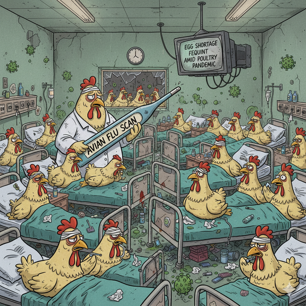 Polli malati, una vignetta con l’Ai Se in provincia di Pavia (e in gran parte del Paese) abbiamo finalmente tirato un sospiro di sollievo per il crollo dei casi di peste suina, le infezioni e le malattie che riguardano le specie d’allevamento continuano a preoccupare. In queste ore, infatti, a spaventarci è il ritorno dell’aviaria. Tra il 6 settembre e il 14 novembre 2025 scrivono le agenzie stampa – sono stati segnalati 1.443 casi di influenza aviaria ad alta patogenicità (Hpai) A(H5) negli uccelli selvatici in 26 Paesi europei. Come sottolinea l’Efsa, l’Autorità europea per la sicurezza alimentare, si tratta di una quantità “quattro volte in più rispetto allo stesso periodo nel 2024 e il numero più alto dal 2016”. Nel corso di tale periodo gli uccelli acquatici in varie parti d’Europa sono stati fortemente infettati dall’Hpai, con casi rilevati anche in uccelli selvatici apparentemente sani, il che ha provocato una contaminazione ambientale diffusa. “Tra le varie misure urge rafforzare la sorveglianza ai fini di una diagnosi precoce e garantire una biosicurezza stringente negli allevamenti”, sottolinea l’ente, “onde prevenire l’introduzione dell’Hpai nei volatili domestici e la sua ulteriore diffusione negli allevamenti di pollame”.