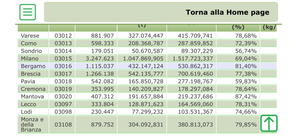 Tutto questo per dire che l’Ispra, ossia l’Istituto Superiore per la Protezione e la Ricerca Ambientale, ha pubblicato il rapporto 2025 proprio ieri. E dai dati del 2024, la provincia di Pavia, nel suo complesso – come si vede in questa tabella – è la seconda peggiore della Lombardia con una percentuale che non arriva al 60%. Soltanto Sondrio ci batte per scarsa attenzione ambientale.